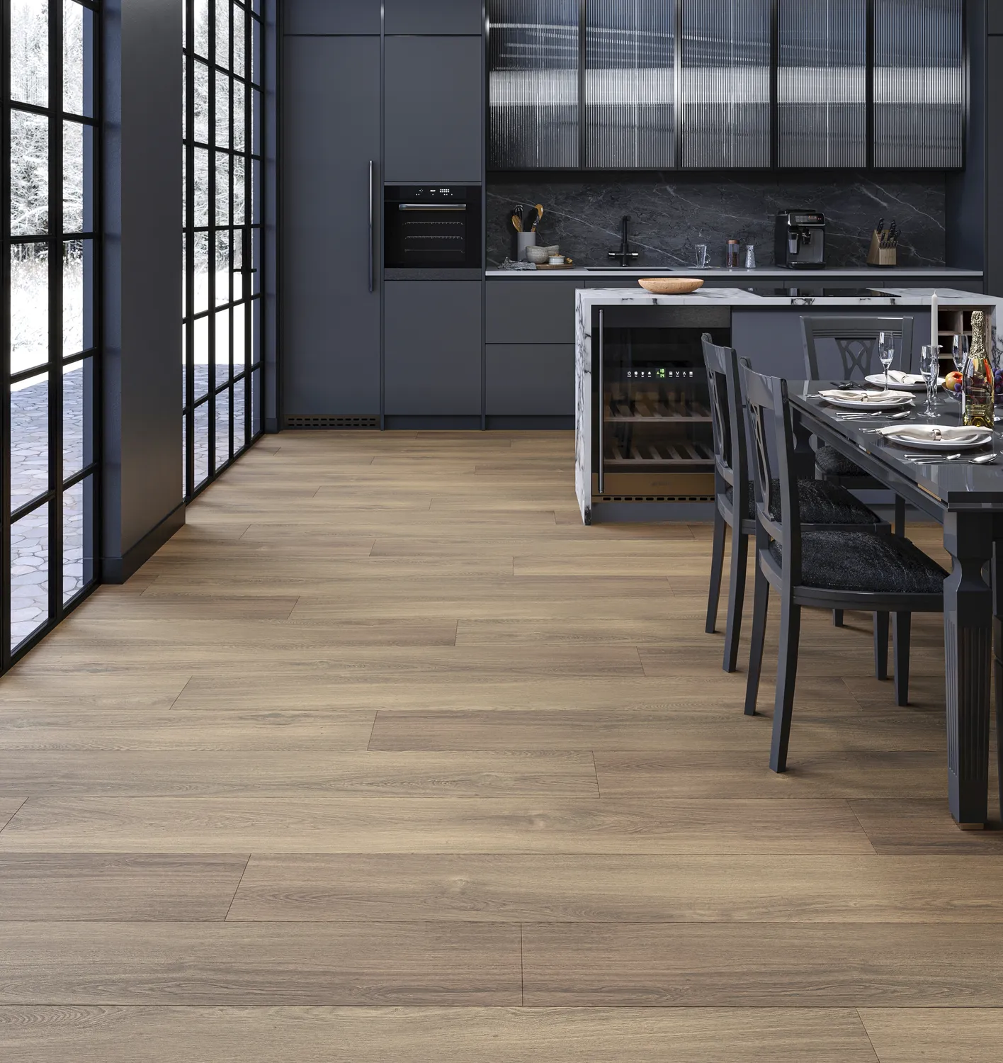 100% водостойкость, можно укладывать в кухни, коридор и уличные зоны