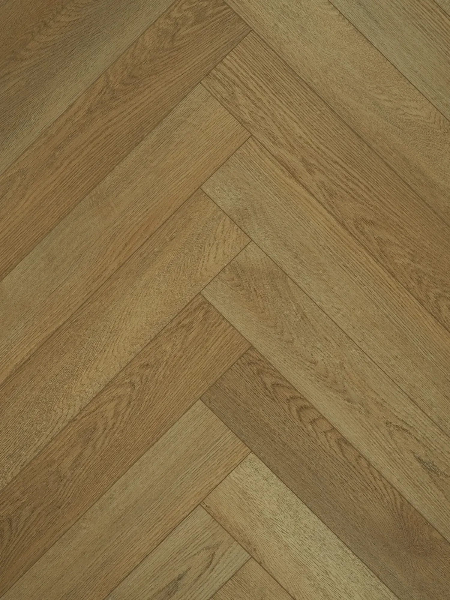Синхронный рельеф совпадает с рисунком декора — поверхность неотличима от натурального паркета