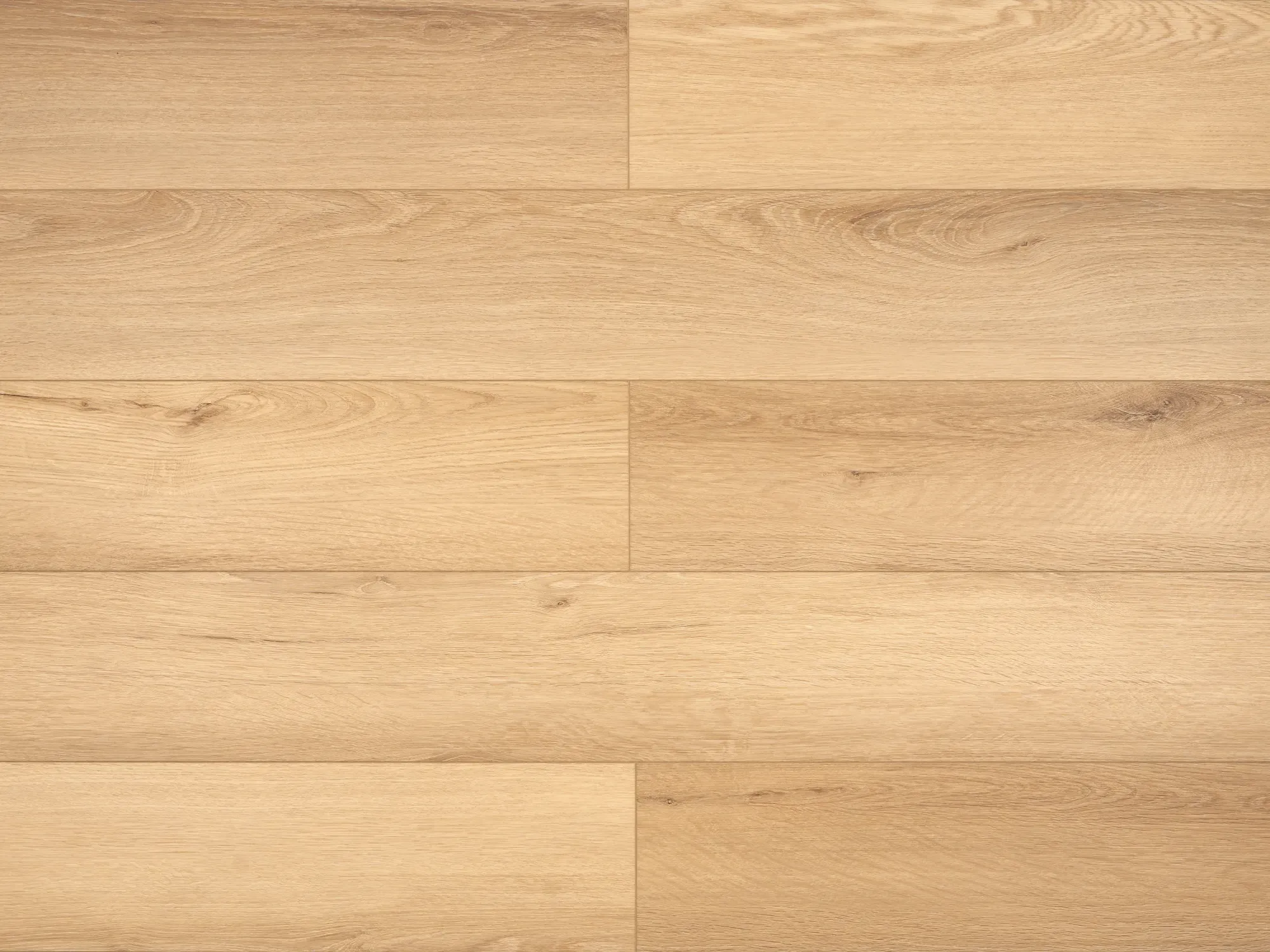 Синхронный рельеф совпадает с рисунком декора — поверхность неотличима от натурального паркета