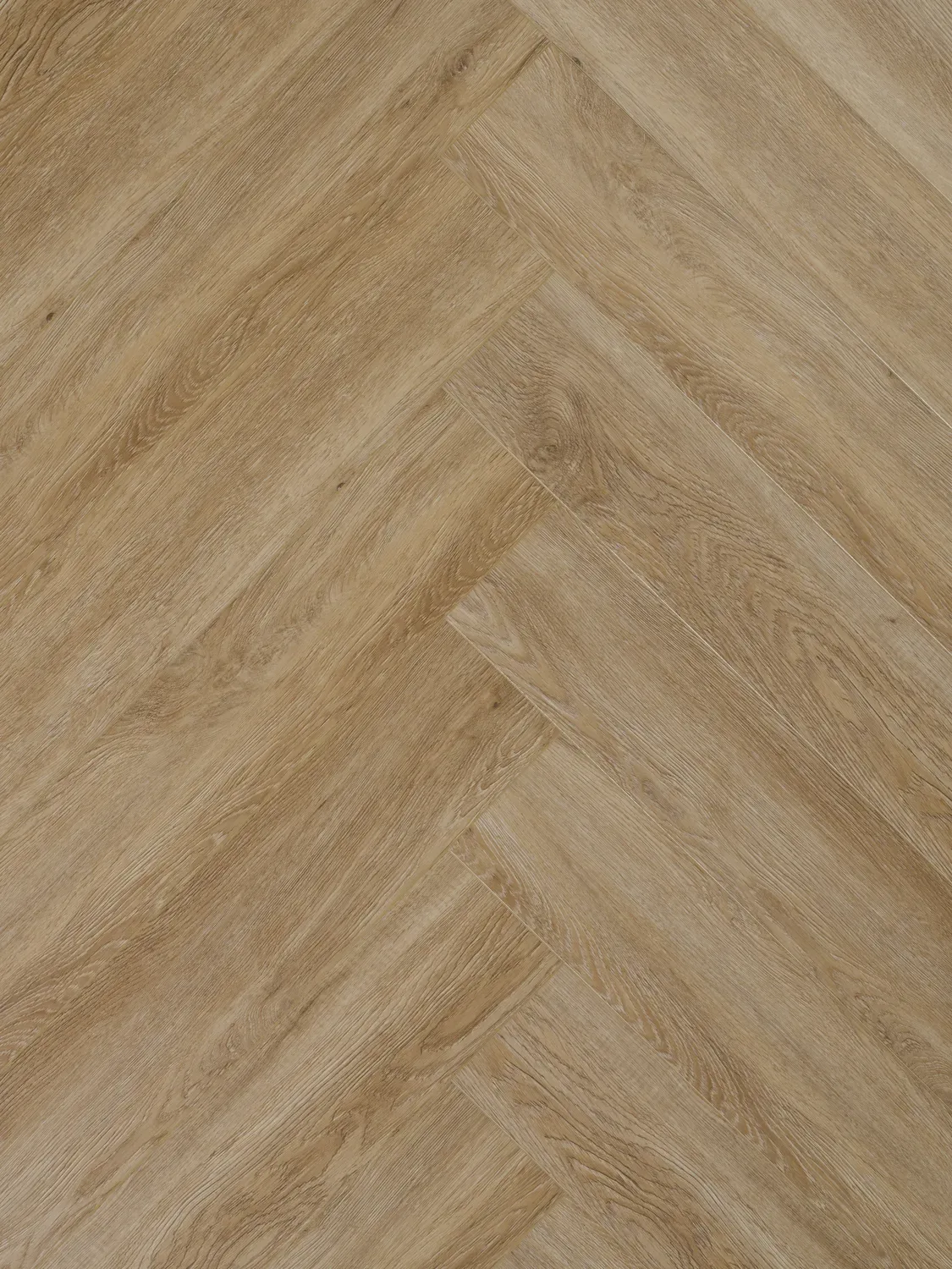 Синхронный рельеф совпадает с рисунком декора — поверхность неотличима от натурального паркета