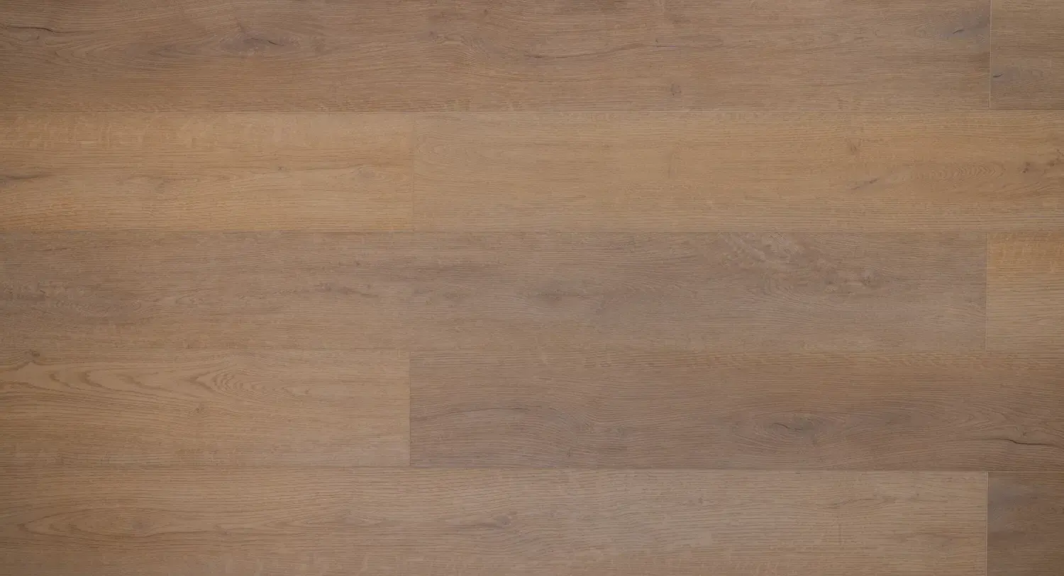 Синхронный рельеф совпадает с рисунком декора — поверхность неотличима от натурального паркета