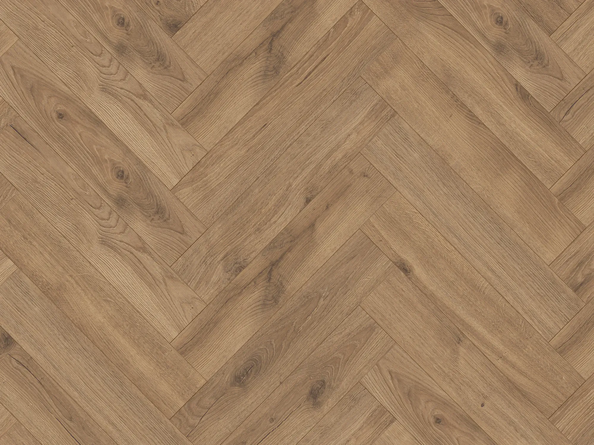 Синхронный рельеф совпадает с рисунком декора — поверхность неотличима от натурального паркета