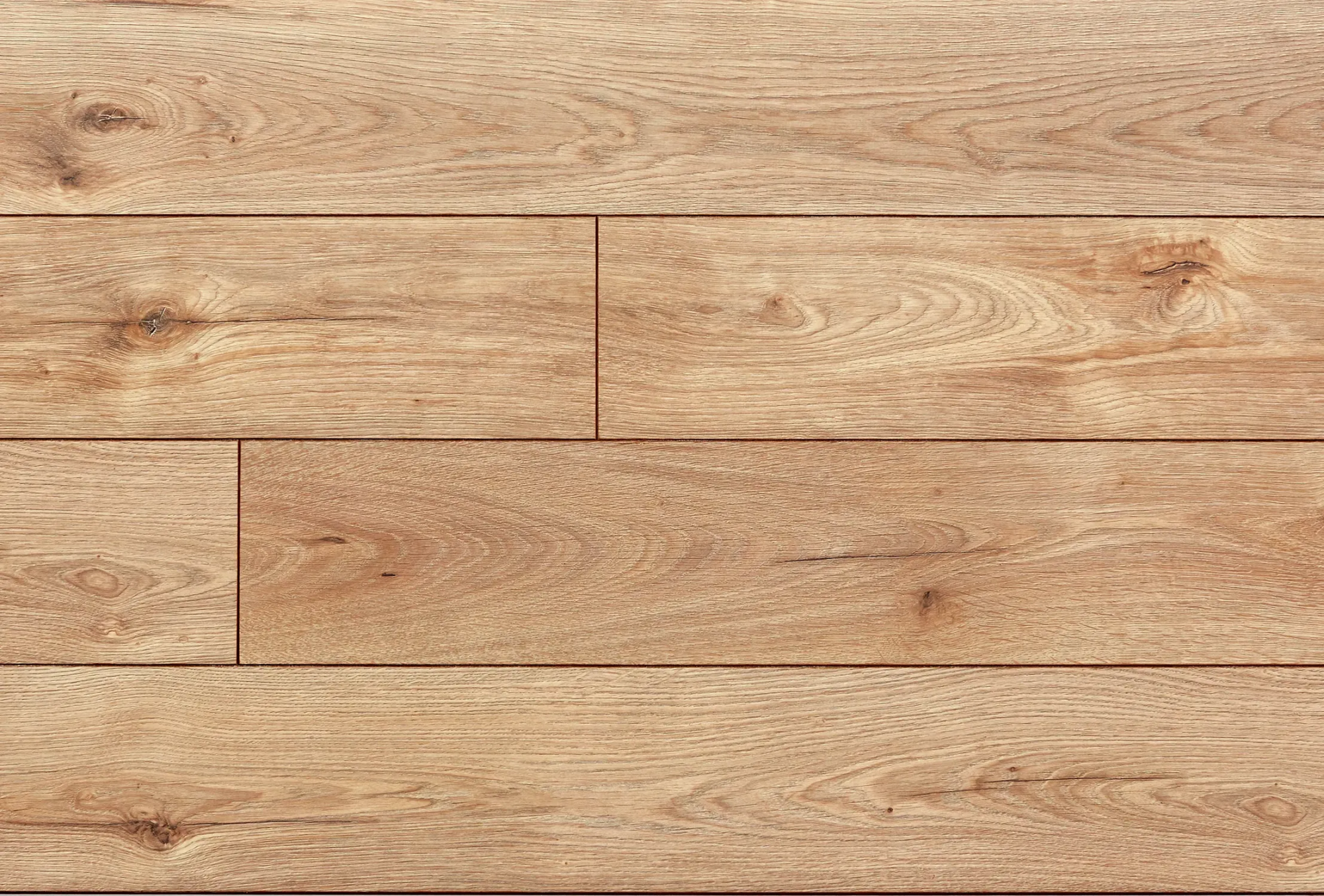 Синхронный рельеф совпадает с рисунком декора — поверхность неотличима от натурального паркета